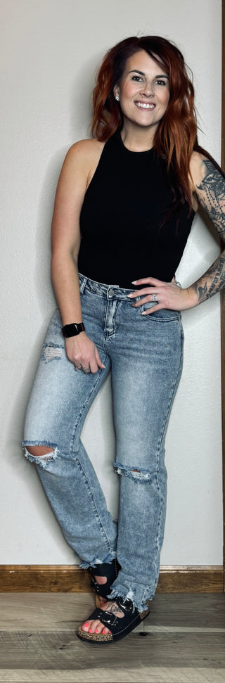 Judy Blue Full Size High Waist Vintage Wash Front Seam & Slit Straight Plus Size