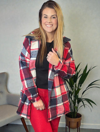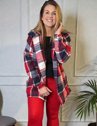 Soft Red Plaid Button Up Jacket
