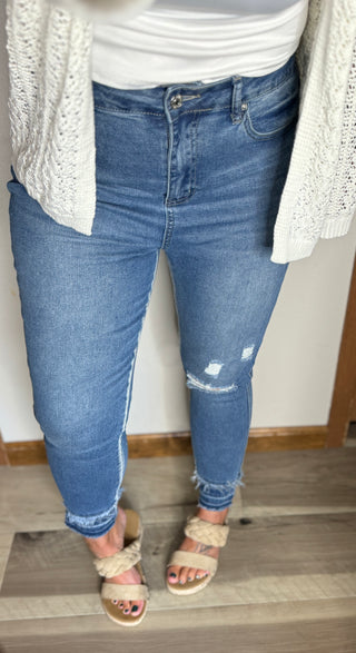 Frayed Medium Blue Jegging Style Jean
