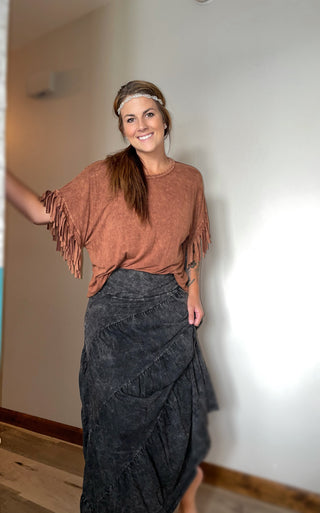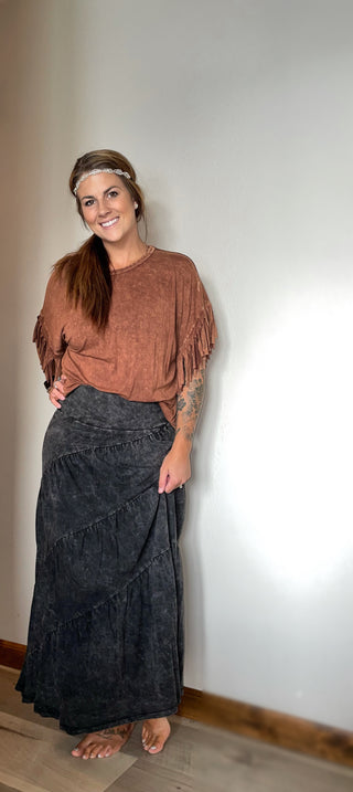 Mineral Dyed Tiered Skirt - Black