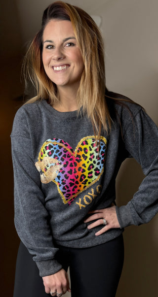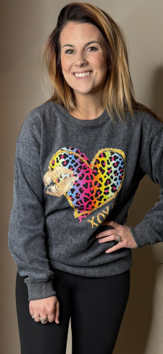 Multicolor Leopard Heart/Lips Crewneck