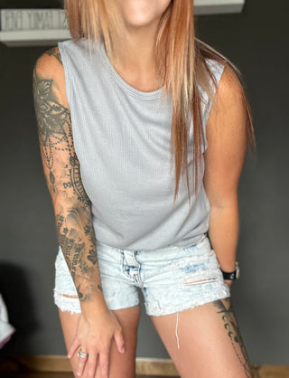 Light Gray Crewneck Textured Tank Top